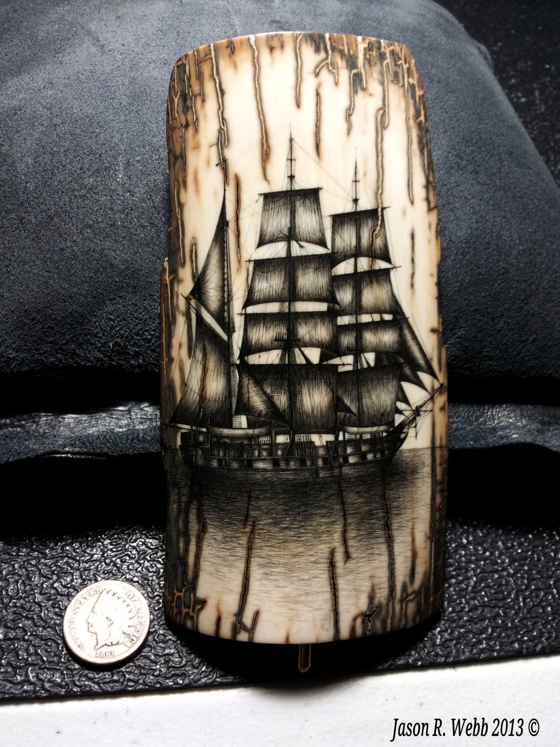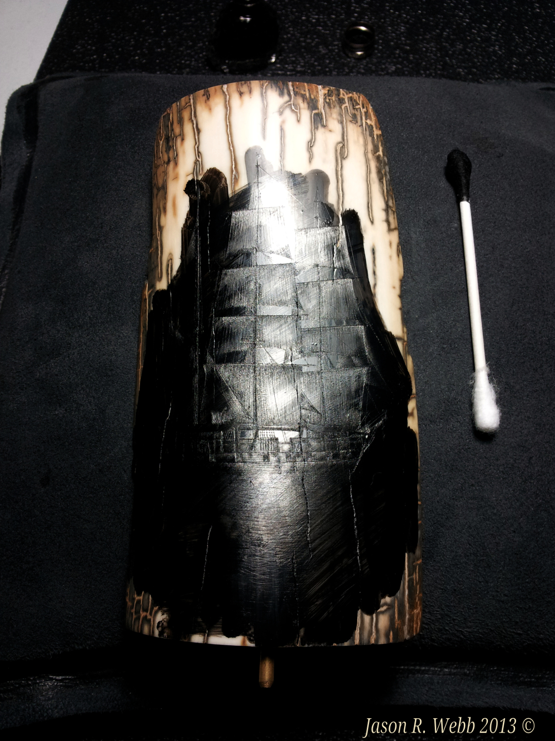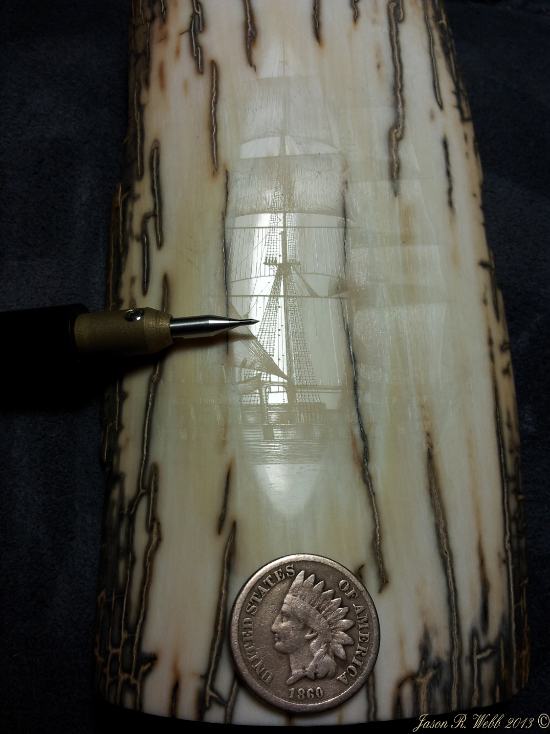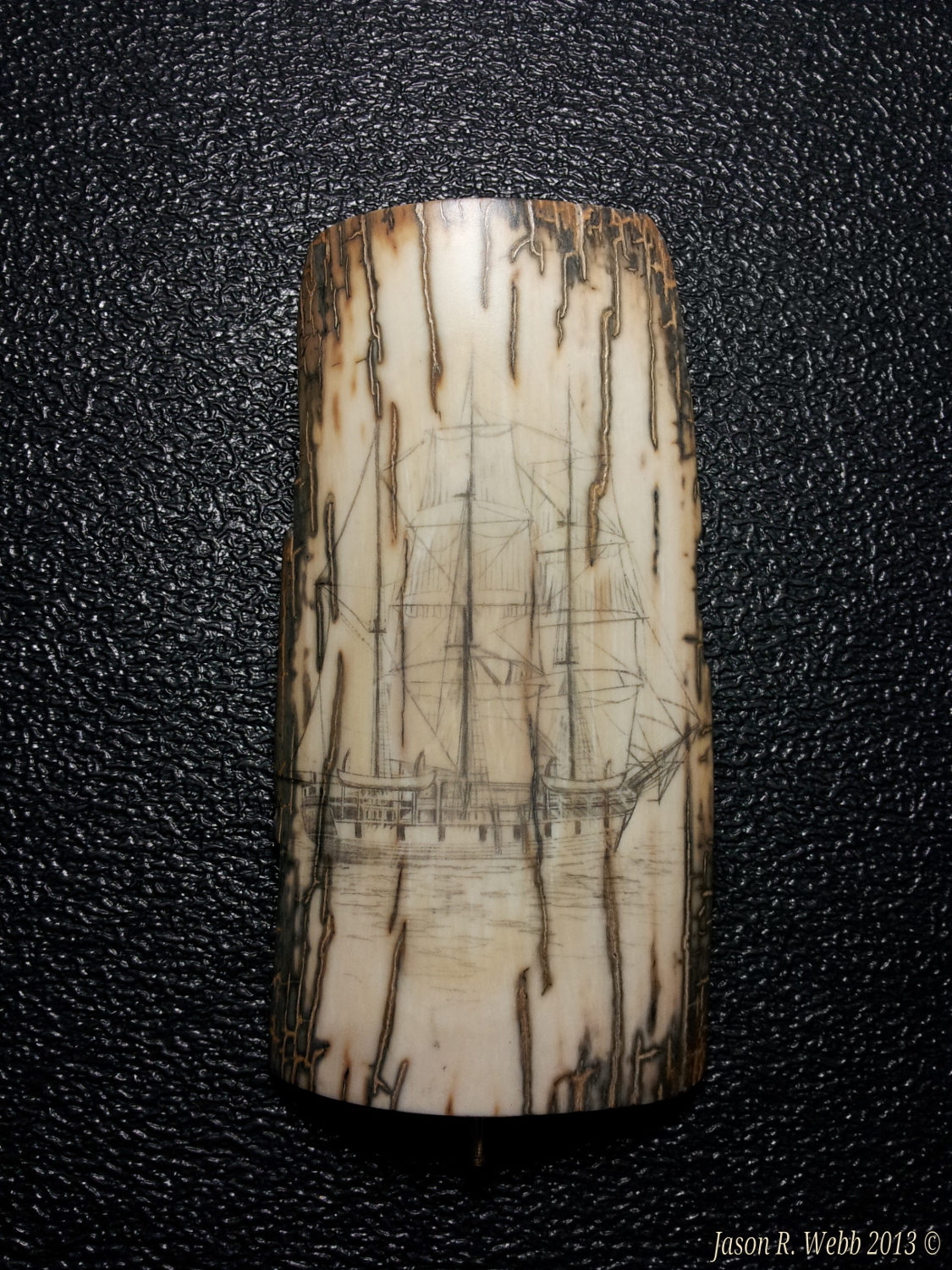 In 2013 Jason entered the piece into the International Scrimshaw Competition held in Wickford, Rhode Island, an annual scrimshaw competition.