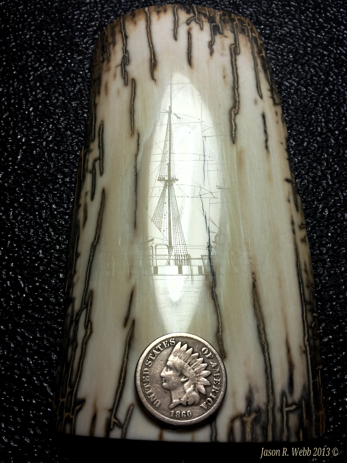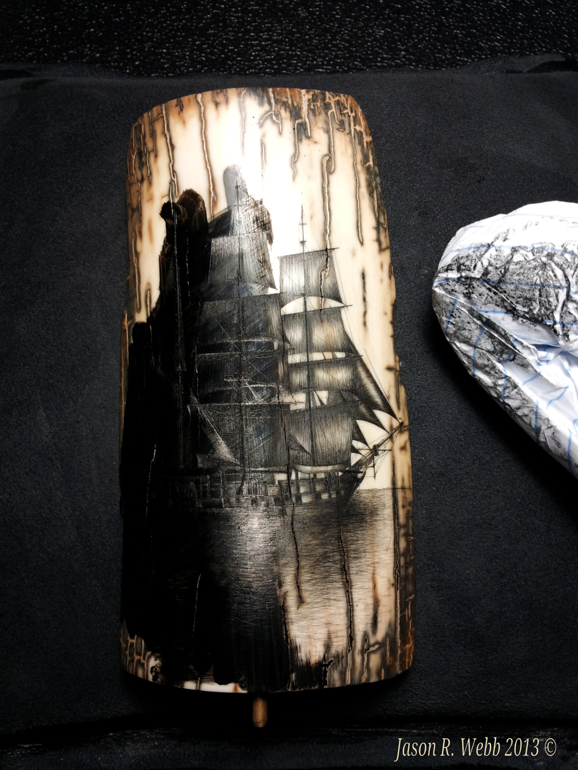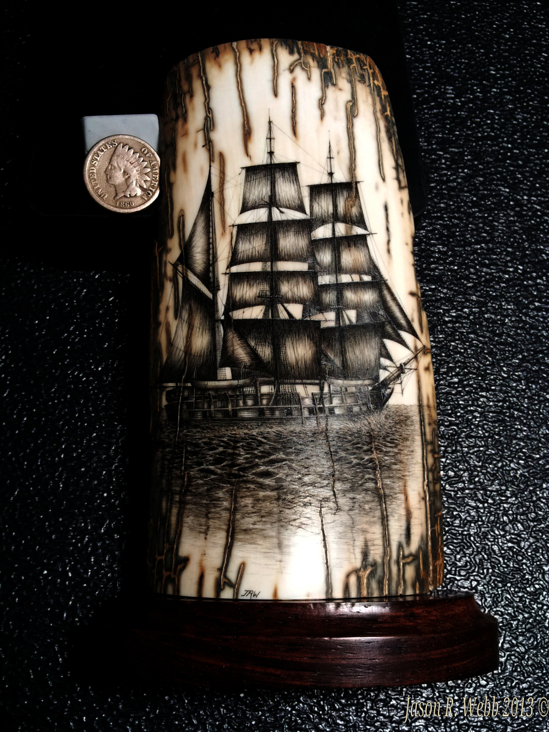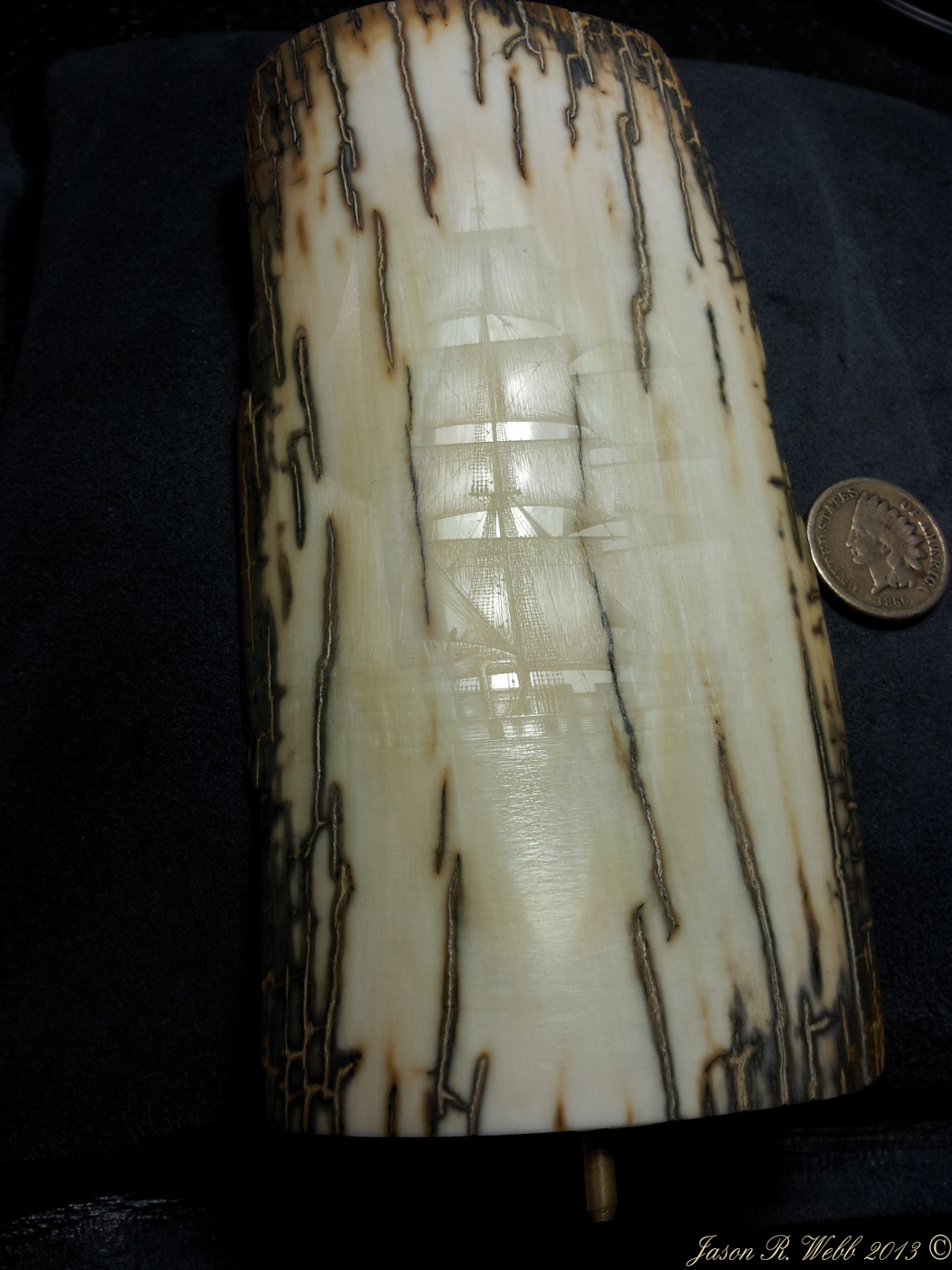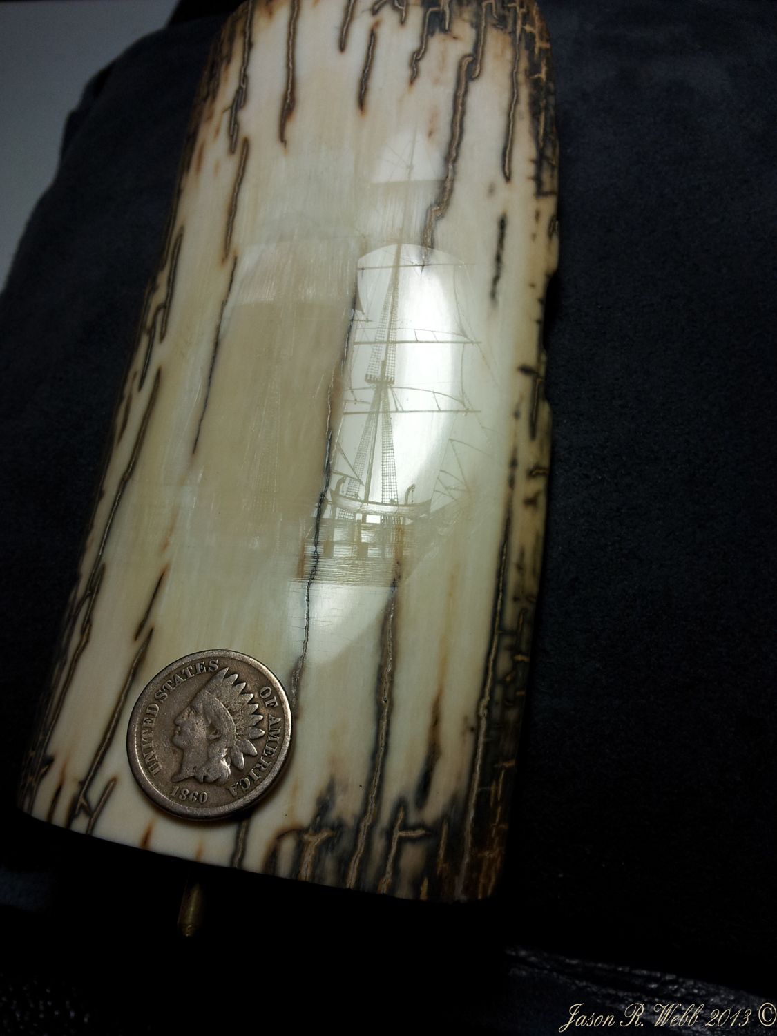 In 2013 Jason entered the piece into the International Scrimshaw Competition held in Wickford, Rhode Island, an annual scrimshaw competition.