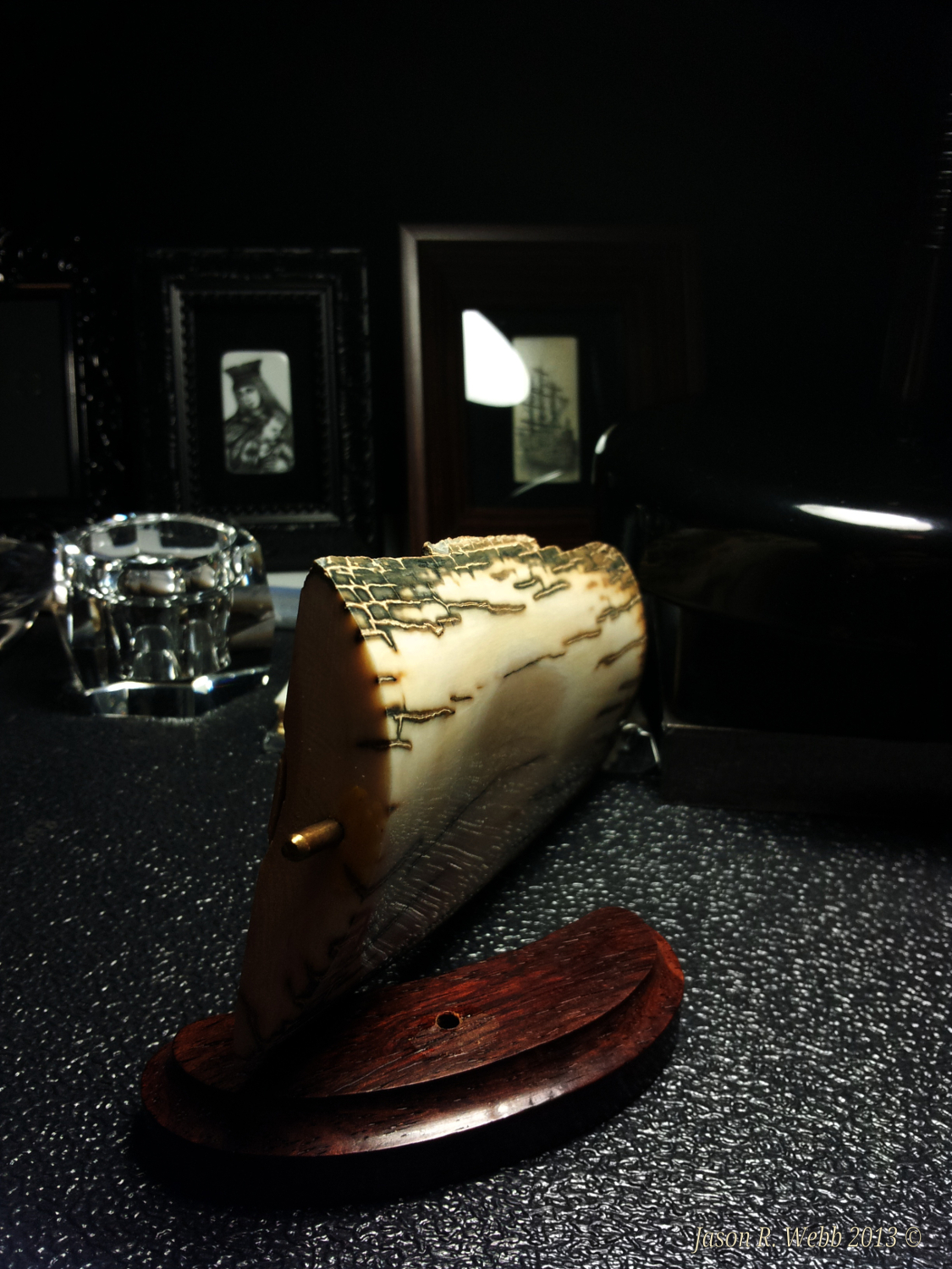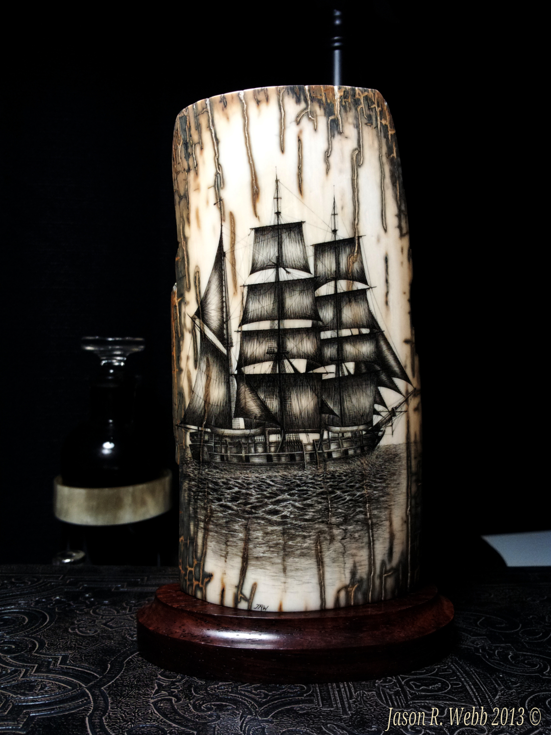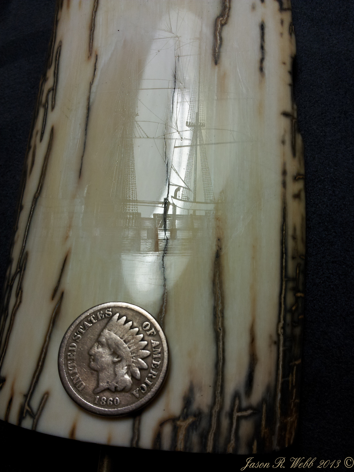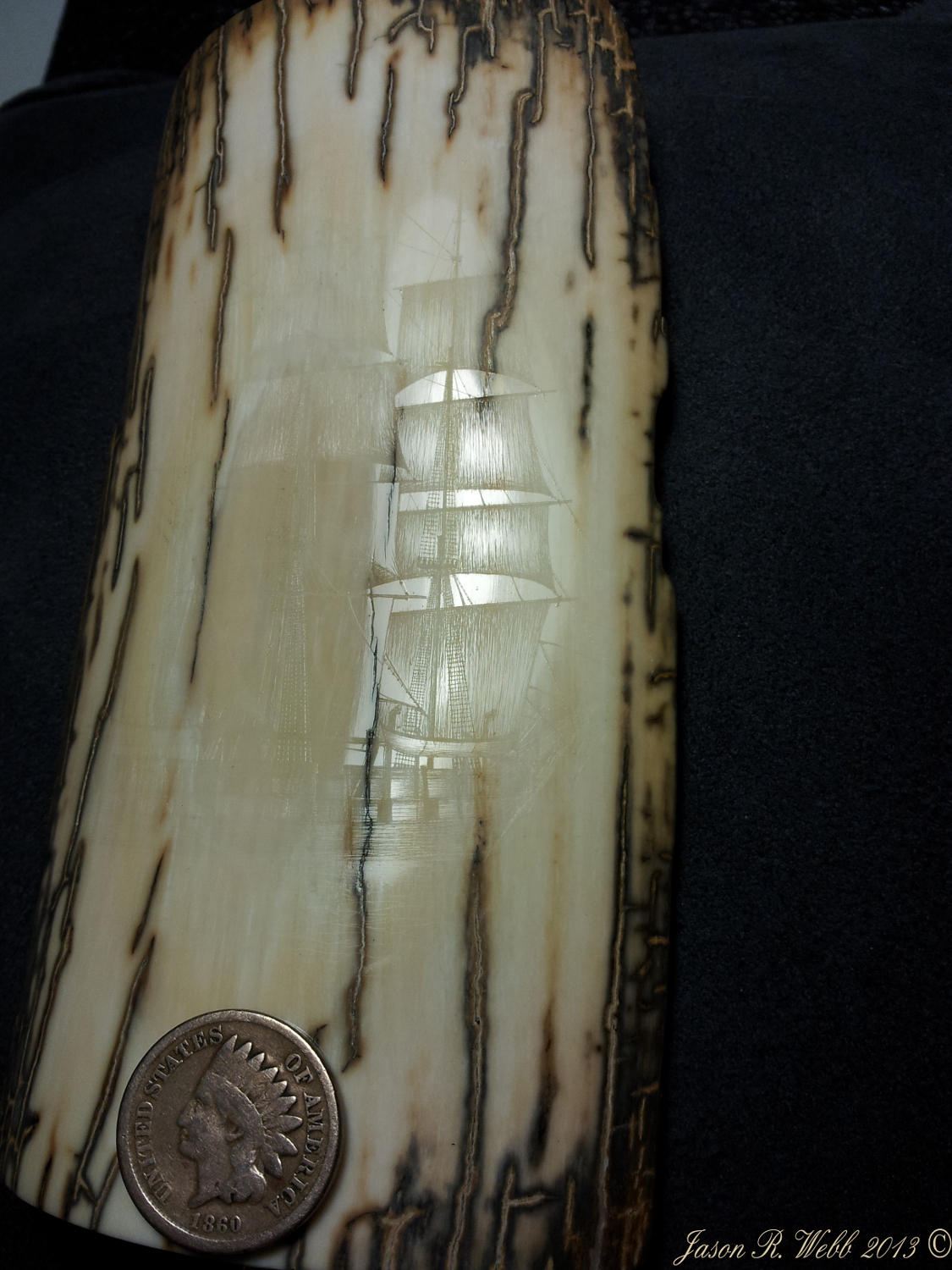 In 2013 Jason entered the piece into the International Scrimshaw Competition held in Wickford, Rhode Island, an annual scrimshaw competition.