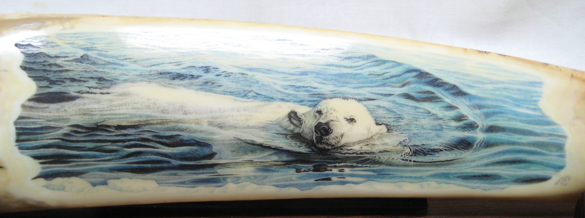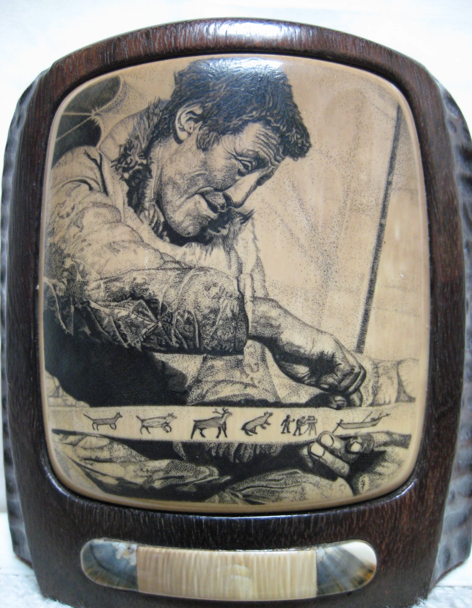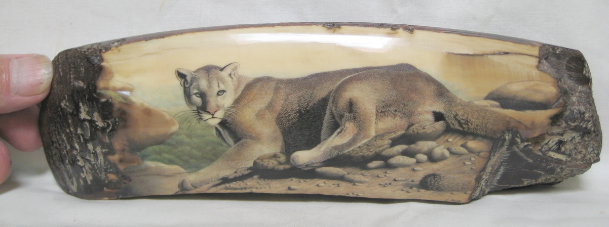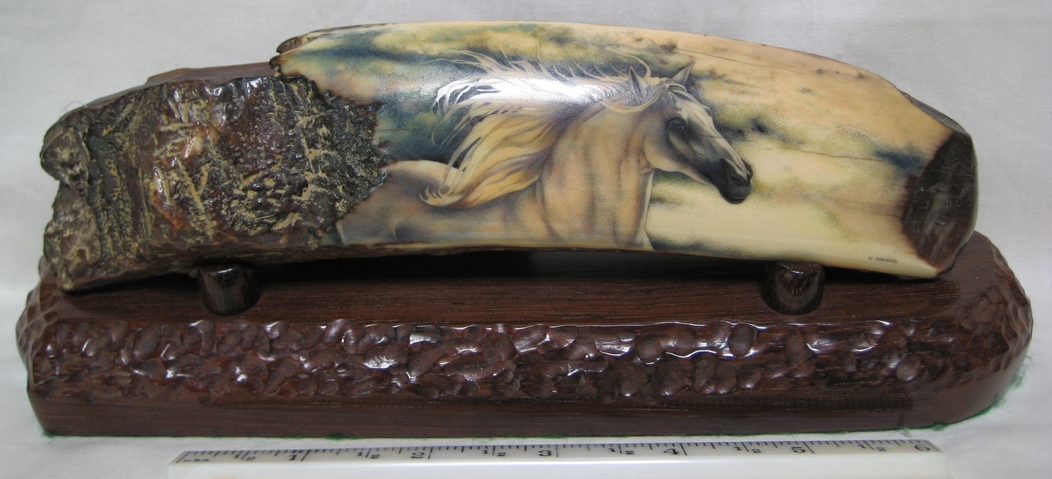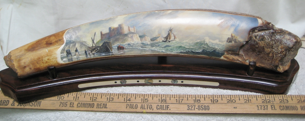 Oso Famoso is a name many older “scrimshaw geeks” may remember, as he was one of the first to show and sell scrimshaw and fossil ivory online. I especially remember the goldfish by Jesus Areck, and seeing the raw mammoth ivory so close yet financially out of reach for me at the time. I’d frequent his site and pause for up to an hour just to look at the fine artwork he had there. “I had started being a supplier of fossil ivories and scrimshaw artist’s representative in the early 1970’s. I would spend some weeks every summer on St. Lawrence Island, Alaska getting fossilized walrus ivory from the Yupik natives. I would provide material and money for various artists, mostly in Bellingham, Wa. and they would give me back what was generally excellent work.
