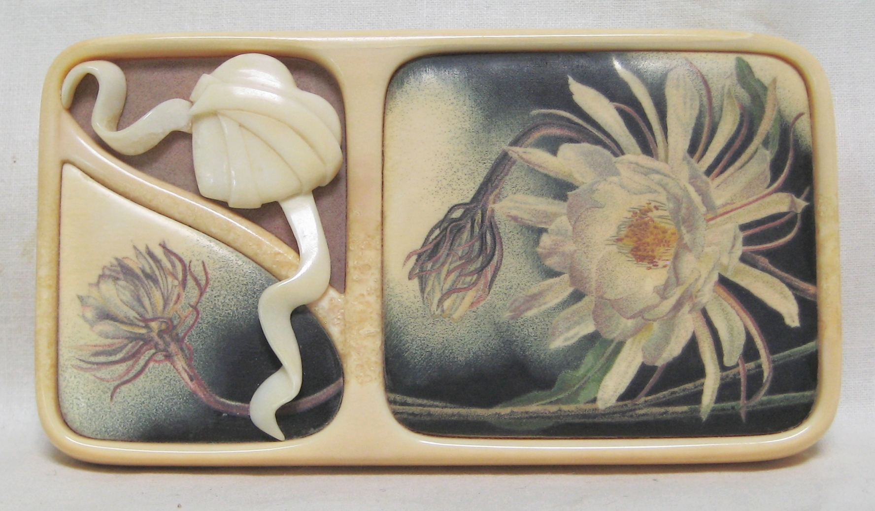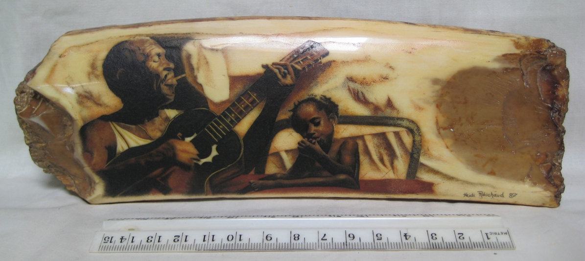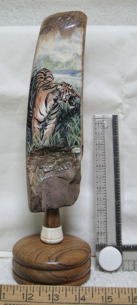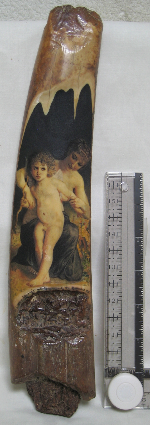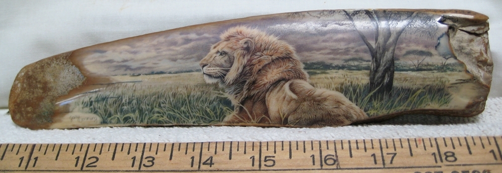 Oso Famoso is a name many older “scrimshaw geeks” may remember, as he was one of the first to show and sell scrimshaw and fossil ivory online. I especially remember the goldfish by Jesus Areck, and seeing the raw mammoth ivory so close yet financially out of reach for me at the time. I’d frequent his site and pause for up to an hour just to look at the fine artwork he had there. “I had started being a supplier of fossil ivories and scrimshaw artist’s representative in the early 1970’s. I would spend some weeks every summer on St. Lawrence Island, Alaska getting fossilized walrus ivory from the Yupik natives. I would provide material and money for various artists, mostly in Bellingham, Wa. and they would give me back what was generally excellent work.