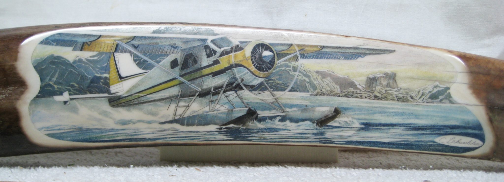“None of these pieces have been recently made. The artists include Chris Lehwalder, Gary Dorning, Heidi Robichaud, Jesus Arick, Kevin Pettelle, Kurt Sperry, Susan Ford, Scott Halligan, Scott Judge, Terry Nelson. The great majority of these pieces use mammoth ivory or fossil walrus ivory.” Some of the pieces may not be available at the time of this publication since they will be sold, others may not be obtainable due to specific state restrictions.