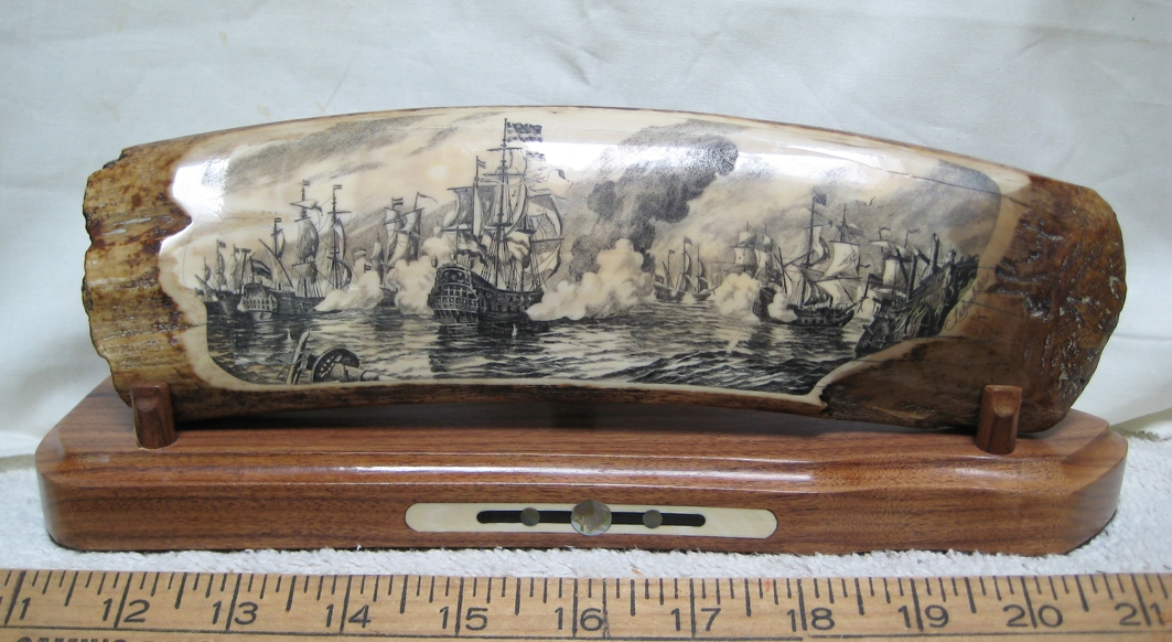 I do not appraise scrimshaw, though there is a scrimshaw gallery (http://www.scrimshawgallery.com/) in Sausalito, California, but that’s the closest one. Beyond that there are maritime museums (Monterey, CA) that may be able to appraise or know of appraisers.