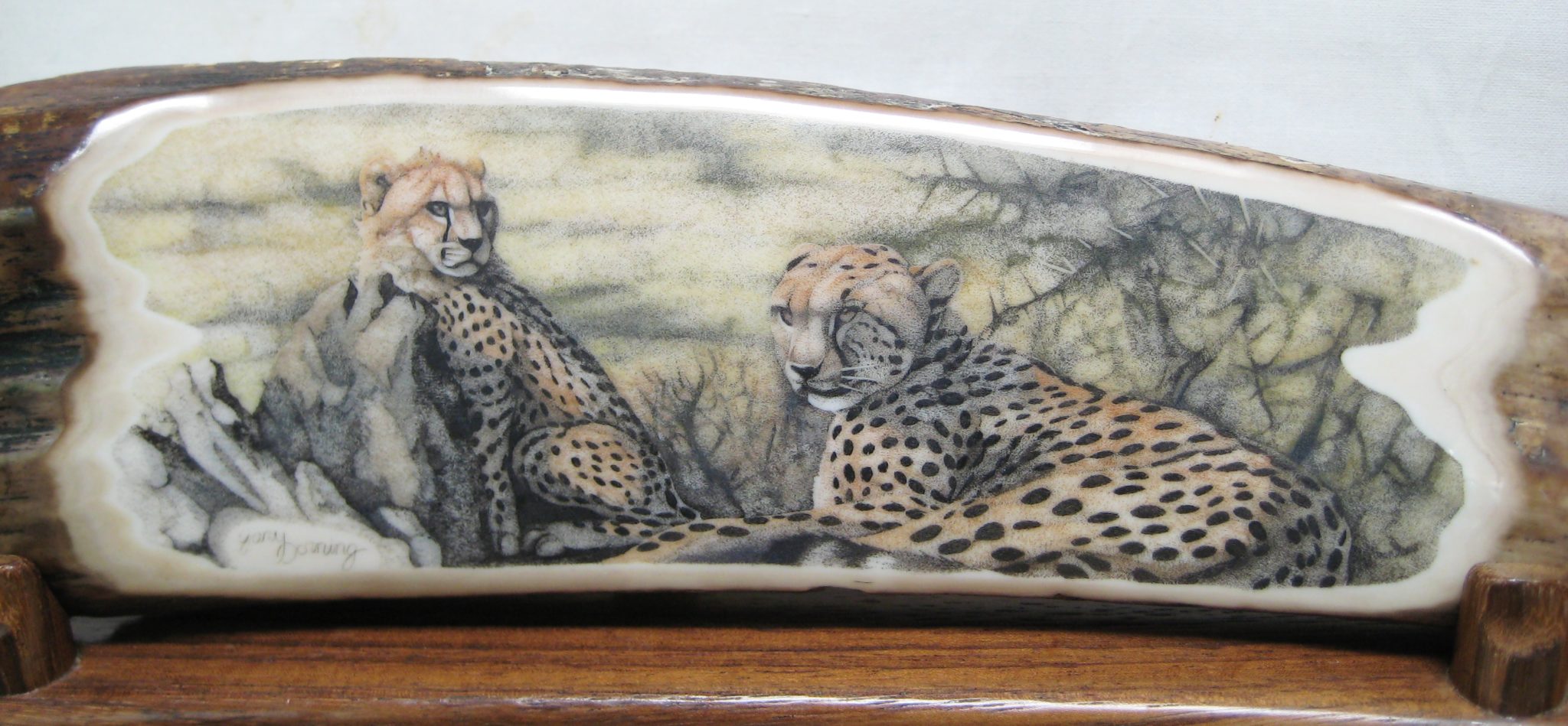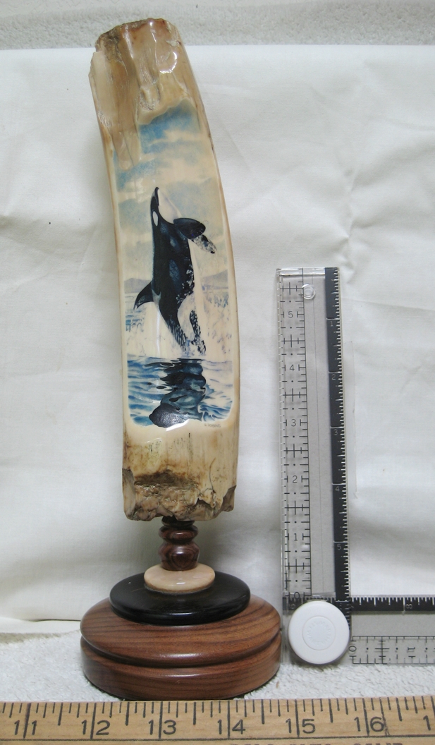 “My mountings were mostly produced by Ken Fredericks of Bellingham, who is now deceased. I haven’t been active in commissioning scrimshaw in a number of years. …”