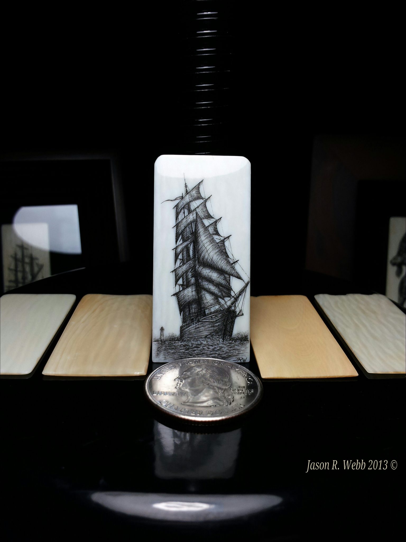Jason has been kind enough to send us pictures of his ship #6, scrimshawed on a piano key. This page is in progress, but we couldn’t wait to share it with you. Check back for added information on the photos. Clicking on any of the pictures will bring it up to full detail, which is astounding.